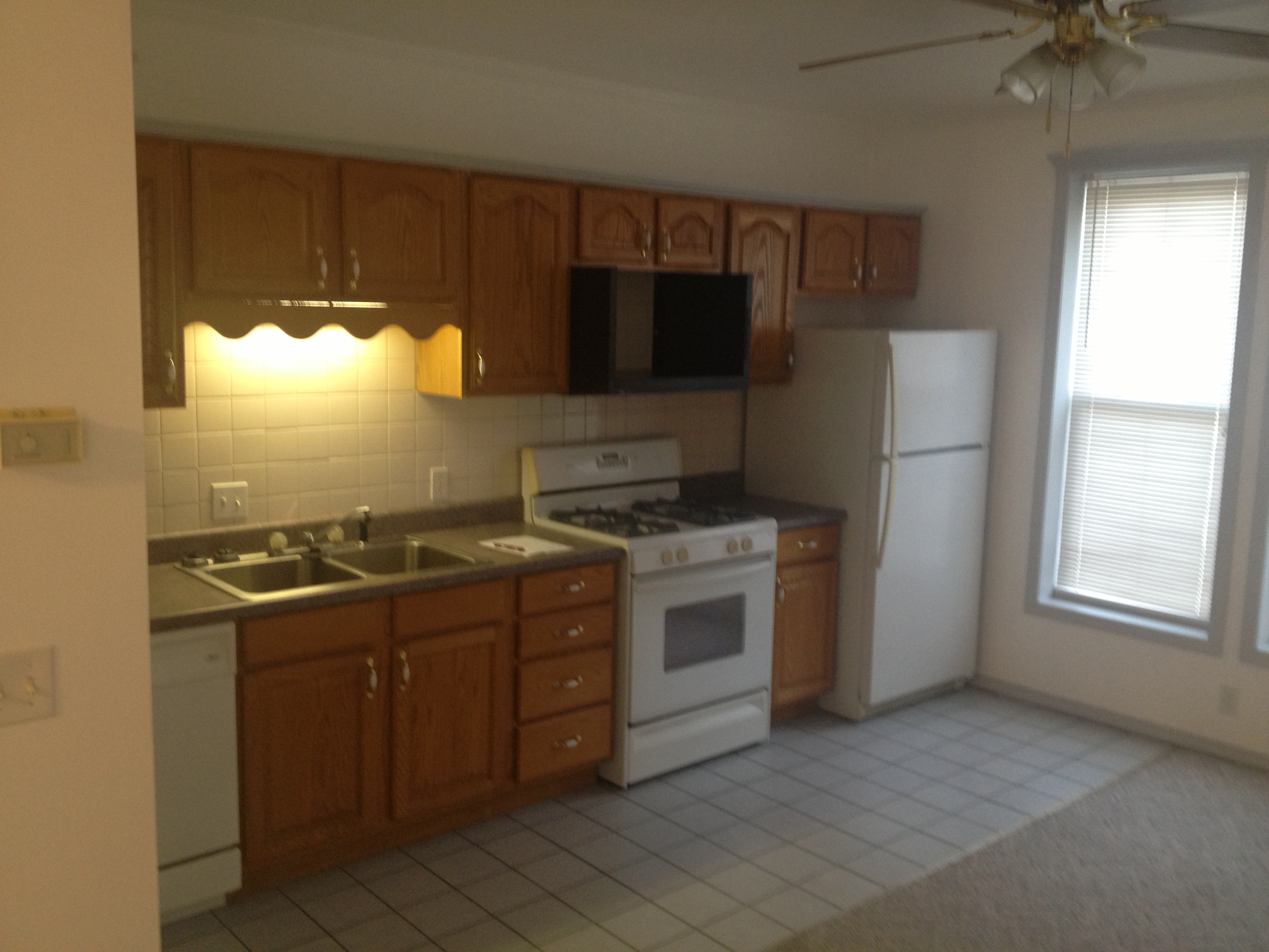 This is a 1 bedroom upper. Parking right outside your door. It was remodeled a few years ago but has been well maintained. Rent is $575.00 a month with oak cabinets, dishwasher, stove, refrigerator, icemaker, washer dryer hookups in basement (or we can rent a set for $20 a month), tile in kitchen and bath, ceiling fans in all rooms, central air. It is a no smoking building and no pets.